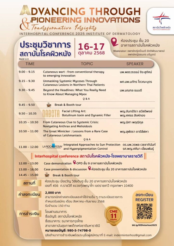 ขอความอนุเคราะห์ประชาสัมพันธ์ ประชุมวิชาการประจำปี 2568 สถาบันโรคผิวหนัง