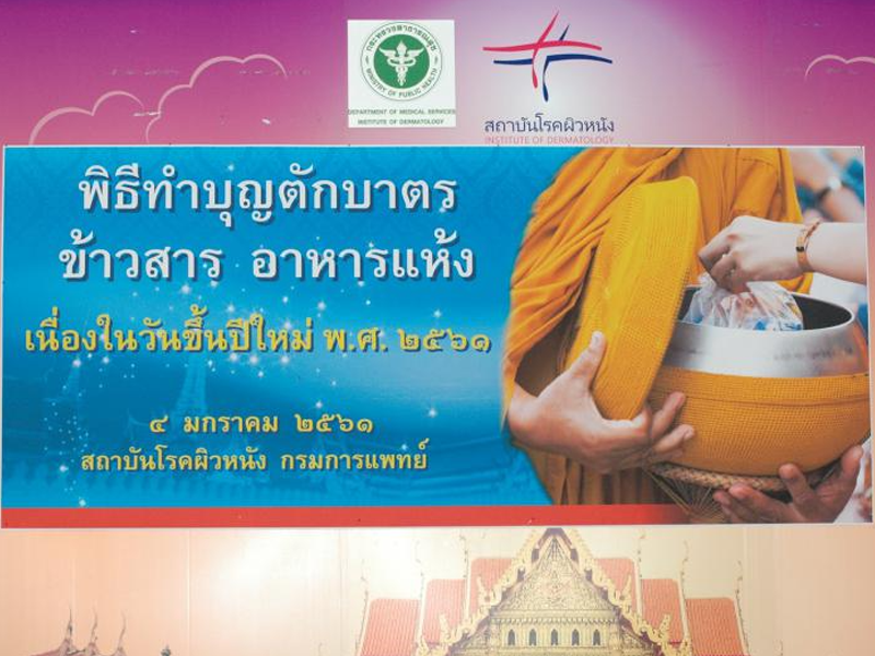 แพทย์หญิงมิ่งขวัญ วิชัยดิษฐ ผู้อำนวยการสถาบันโรคผิวหนัง กรมการแพทย์ และเจ้าหน้าที่สถาบันโรคผิวหนัง ร่วมทำบุญตักบาตรเนื่องในโอกาสวันขึ้นปีใหม่ 2561 ณ ห้องประชุมชั้น 16 อาคารเฉลิมพระเกียรติ 80 พรรษามหาราชินี สถาบันสุขภาพเด็กแห่งชาติมหาราชินี เมื่อวันที่…