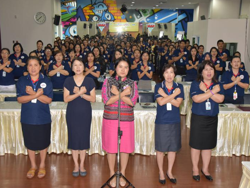 นางมิ่งขวัญ วิชัยดิษฐ ผู้อำนวยการสถาบันโรคผิวหนัง พร้อมด้วยผู้บริหาร และเจ้าหน้าที่ ร่วมกิจกรรม แสดงเจตนารมณ์หรือคำมั่นว่าจะปฏิบัติหน้าที่และบริหารงานอย่างซื่อสัตย์ โปร่งใส และเป็นไปตามหลัก ธรรมาภิบาล
